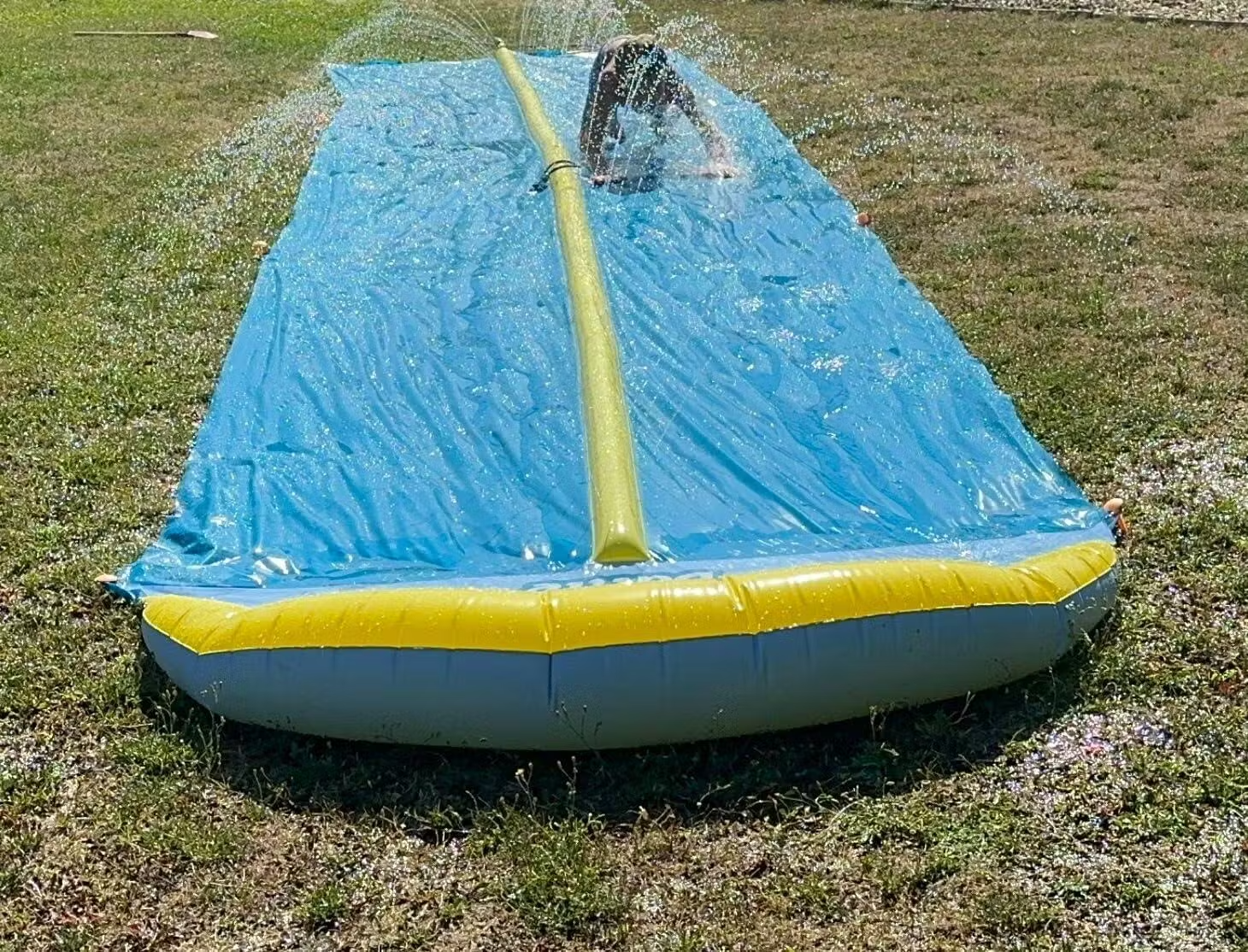 Perfekt för grillkvällen, barnkalaset, midsommar eller bara en riktigt varm tisdag. Det här är inte bara en vattenbana – det är en duell i blöta äran!